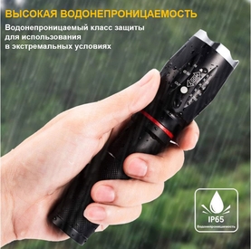 Фонарь оборудован сверхпрочным ударным наконечником, которым в эстренной ситуации можно разбить закалённое стекло в авто.